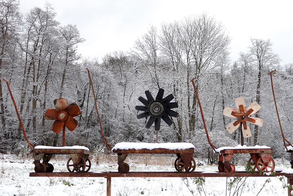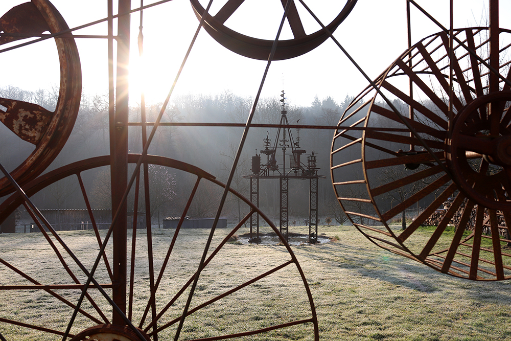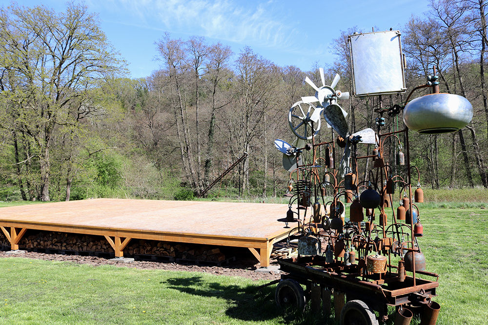 Flyer mit QR-Codes vermittelt Hintergrundinformationen zu den Kunstmaschinen im Moving Art Garden.
