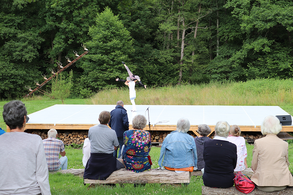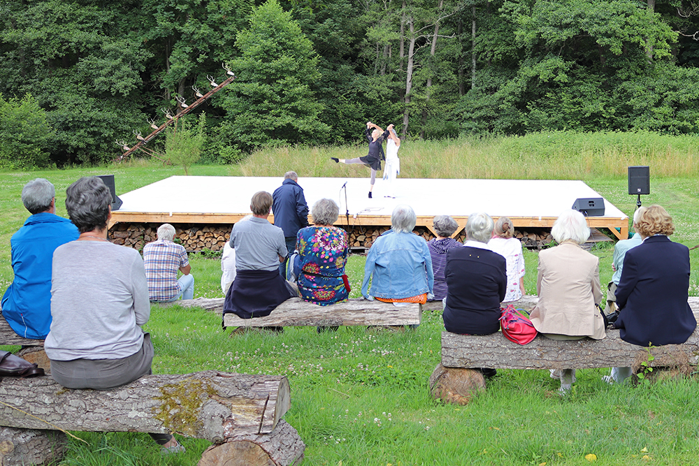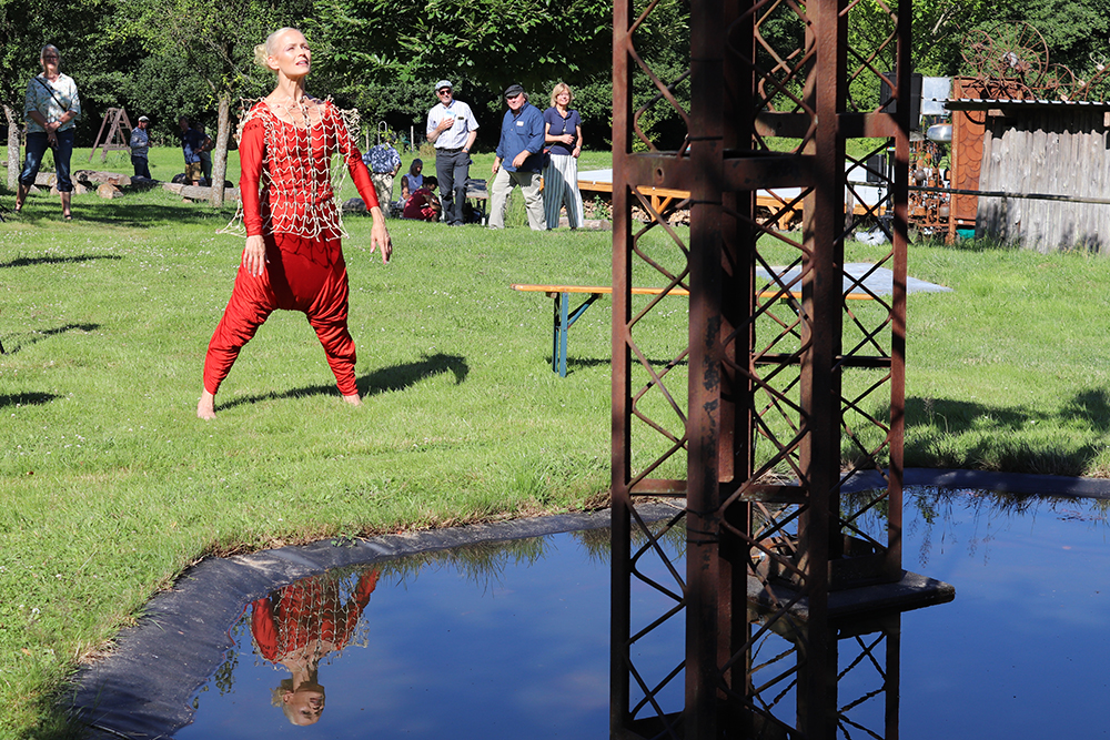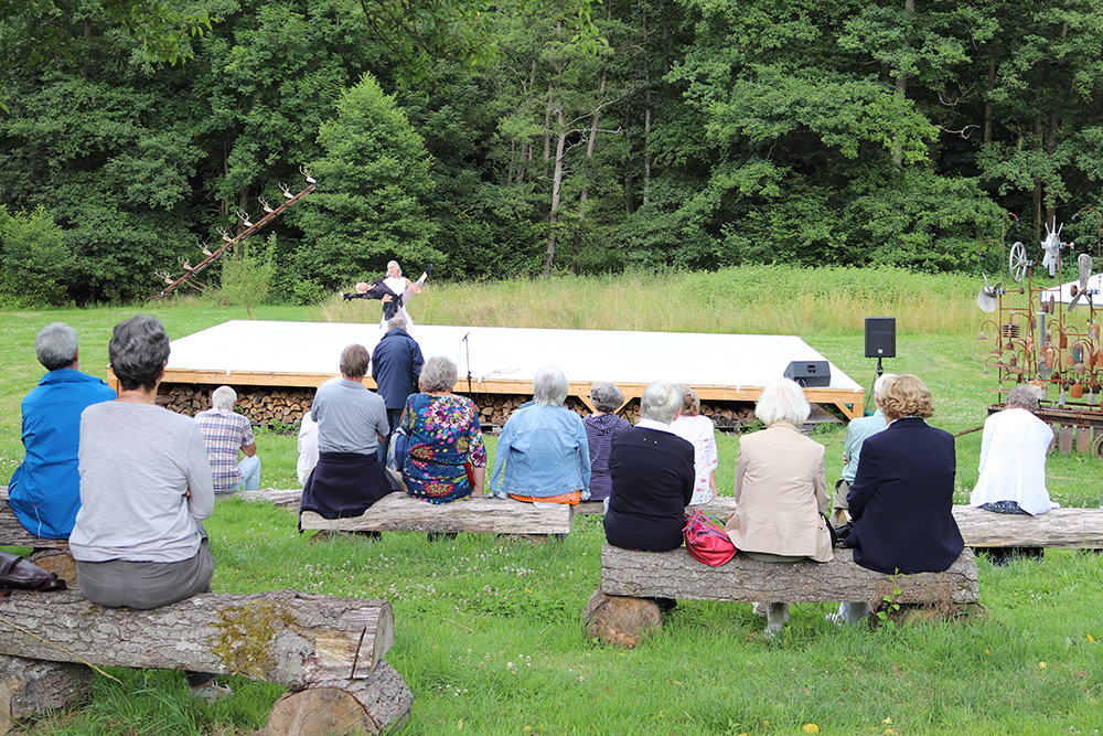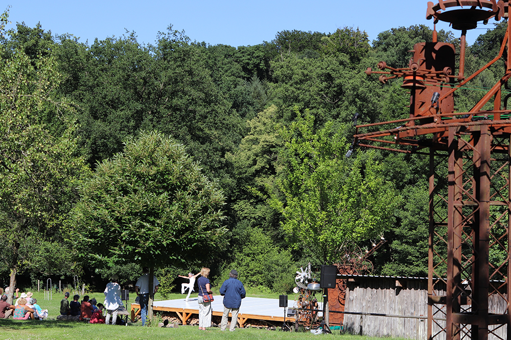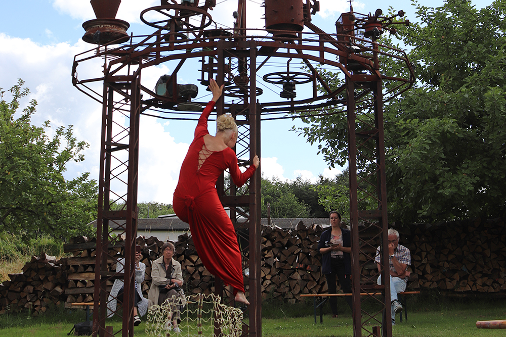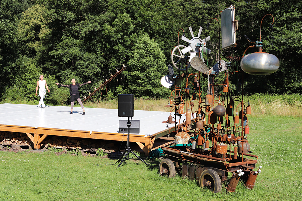 Doch damit nicht genug: Das Tänzerduo Lotta Svalberg und Pascal Sani hat das weitläufige Gartengelände mit einer knapp 100 m² großen Freilichtbühne in einen Ort der Begegnung verwandelt – mit kulturellen Veranstaltungen und Kunstmaschinen des Kinetik-Künstlers Willi Reiche.