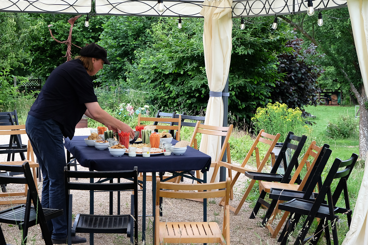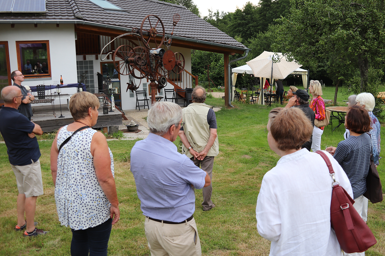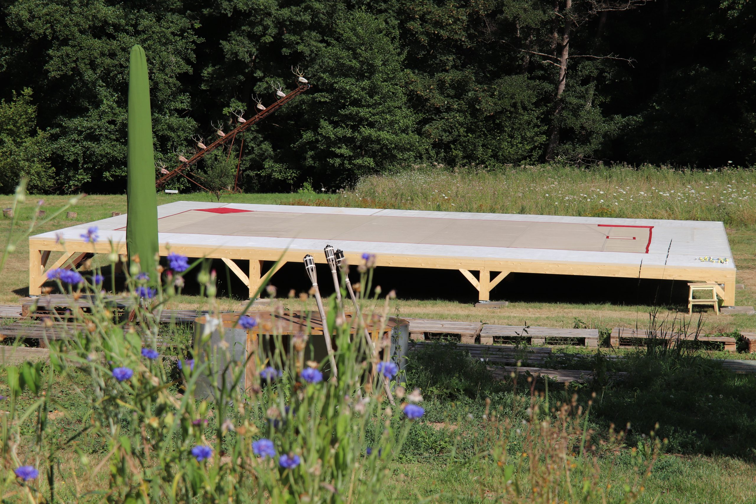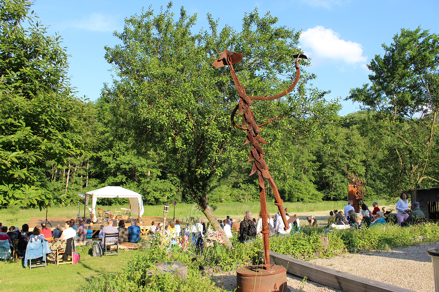 Doch damit nicht genug: Das Tänzerduo Lotta Svalberg und Pascal Sani hat das weitläufige Gartengelände mit einer knapp 100 m² großen Freilichtbühne in einen Ort der Begegnung verwandelt – mit kulturellen Veranstaltungen und Kunstmaschinen des Kinetik-Künstlers Willi Reiche.